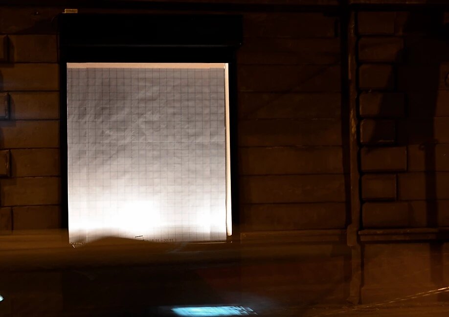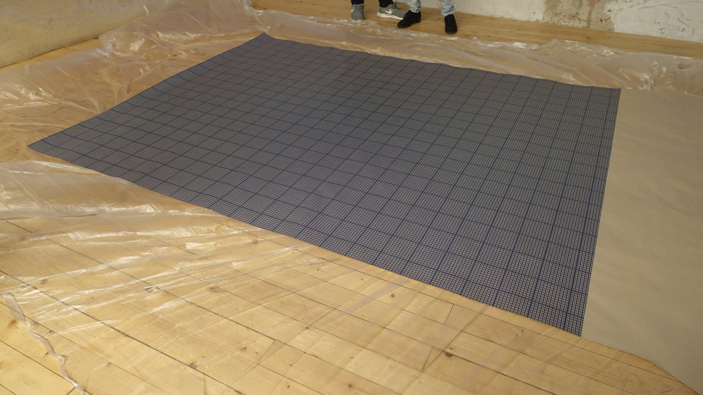 Inside a fifty centimetre deep field, there is a space for realization, for presenting prototypes and ideas. The ones who accept the proposal for delivering ideas sign an imaginary form in which they state that once they seize the moment, they will stick to the small promises they made. For me, this is the greatest value to the field – the ability to evoke commitment in those who work within its measures (shortly), to work well afterwards (eternally). At the opening, space itself is being exhibited and marked with a blue millimetre paper, which resembles an ever lifting curtain. The opening goes on and on. A few minutes, a day, a week? Too much? Too little?