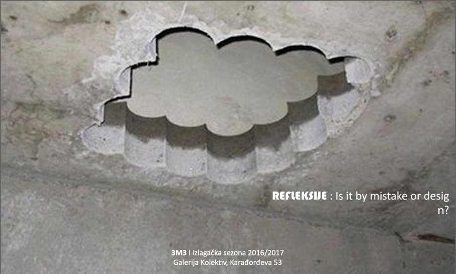 Tematski okvir nove izlagačke sezone izložbenog prostora i programa 3M3 pod nazivom Refleksije: is it by mistake or design? nastoji da se obrati arhitektima i arhitektonskoj aktuelnosti kroz predloženi – reflektivni misaoni postupak kao metod. Višeznačnost pojma refleksije nagoveštava i podstiče spektar pristupa, rakursa i tumačenja heterogene (arhitektonske) savremenosti. 3M3 je prisutan u javnom prostoru ulice, čime je omogućena direktna i neprekidna interakcija i vidljivost postavke. Kao što podnaslov ove sezone sugeriše, postavka u prozoru, u očima prolaznika može izgledati kao kakva sistemska greška, igra percepcije ili sadržaj izgubljen u prevodu. Iz prethodnog, odraz podrazumeva neku vrstu prevođenja ili tumačenja od strane aktera/autora/posmatrača, i time menja sadržaj, formu ili strukturu pozicije od koje se krenulo, poput glitch-a, smetnje u prijemu, dovoljno varljive da ne možemo sa sigurnošću tvrditi da li je u pitanju greška ili namera.