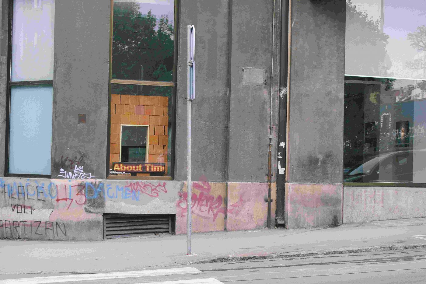 In relation to the three cubic meters and the space of the window (or: window within a window), the installation relates to the ‘left behind-ness’, ‘incomplete-ness’, ‘useful-ness’ as a triad, but also as individual characteristics – just like the houses in question, You Know Nothing About Time is only a backdrop for traces of everyday life.