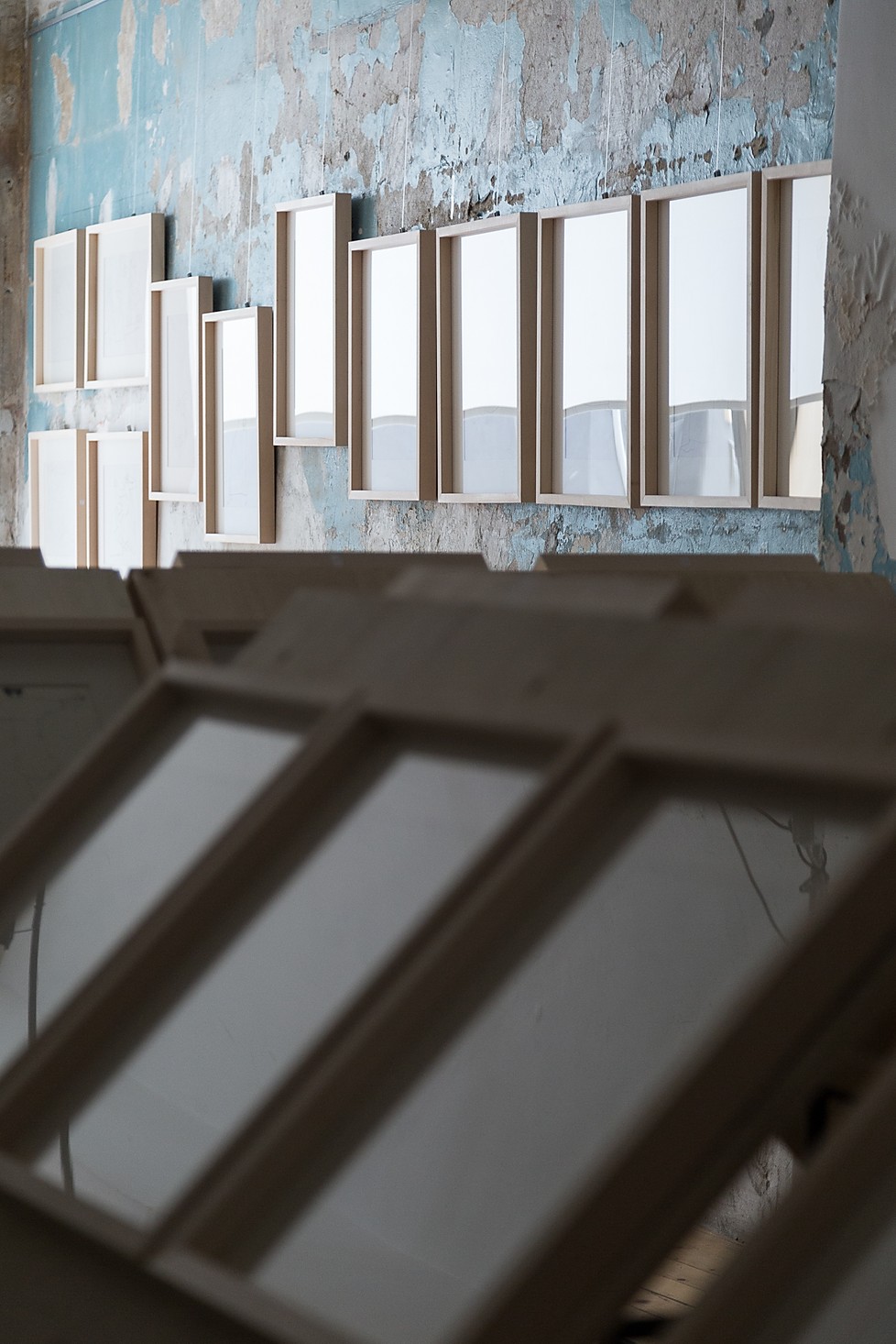 The series that has been on view in the Kolektiv Gallery refers to Siza’s work in the Marian sanctuary in Fatima, Portugal. The new Basilica of the Holy Trinity was built in 2007, by the project of the Greek architect Alexandros Tombazis, and Alvaro Siza has conceptualised the mural in the chapel.