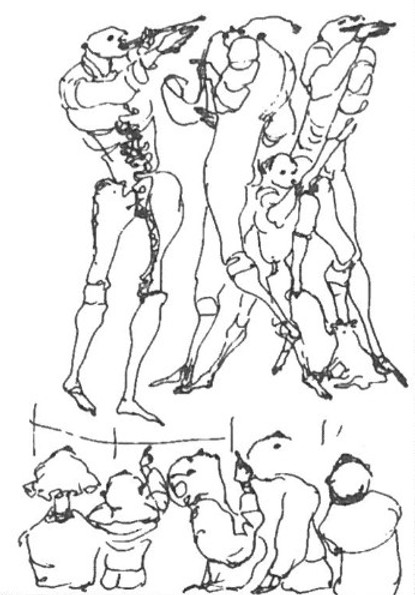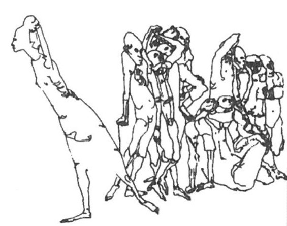The series of templates that were the basis for this monumental mural has been presented in Belgrade. Drawings that once again confirm Siza’s distinctive manner, simple, precise, well thought-out and expressive. On the other hand, the work of his wife, though stylistically similar, is in content entirely different. In her works, Maria Antónia Siza entered the spheres of imagination and grotesque.