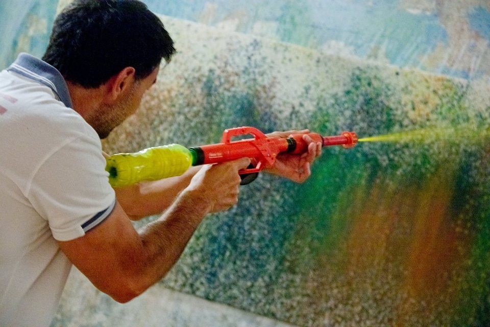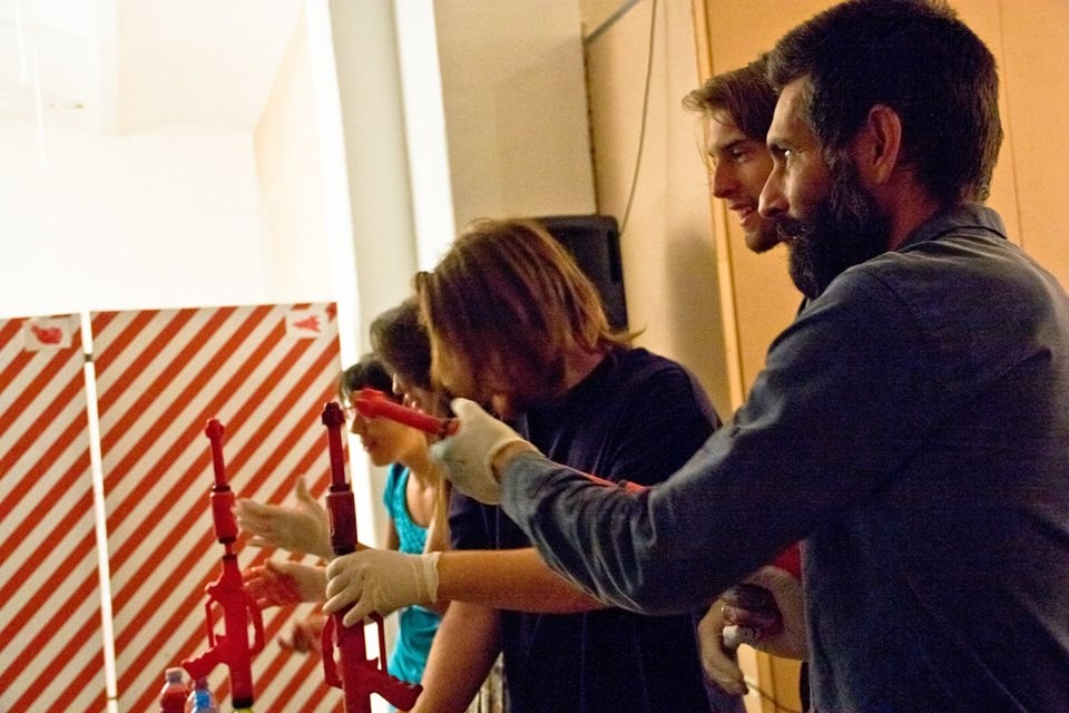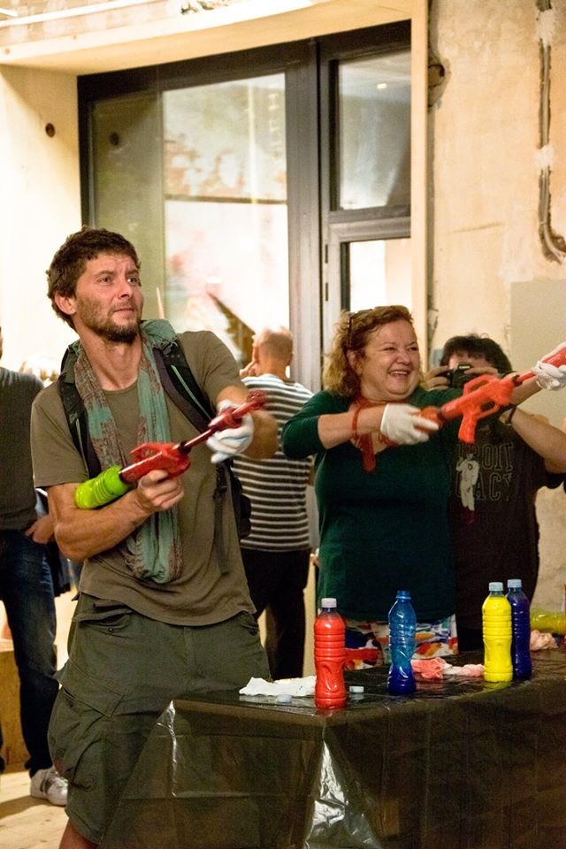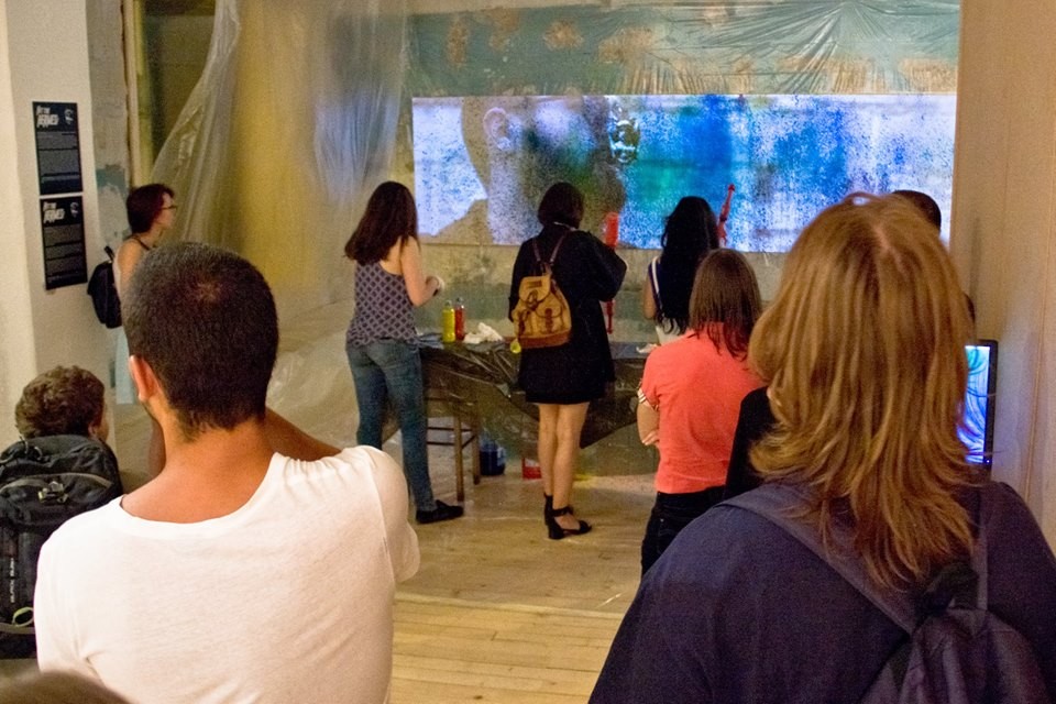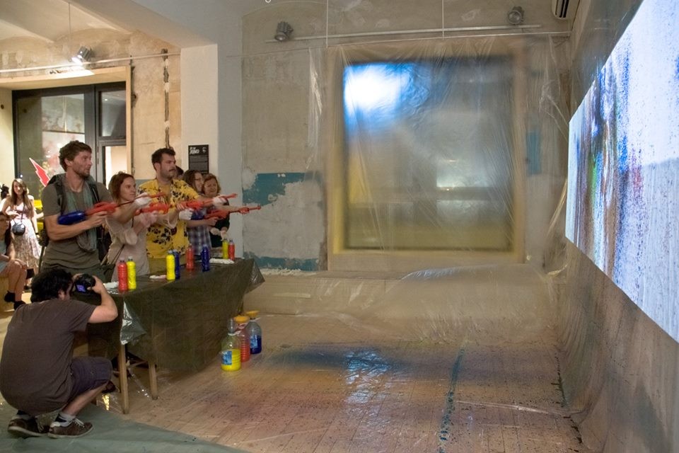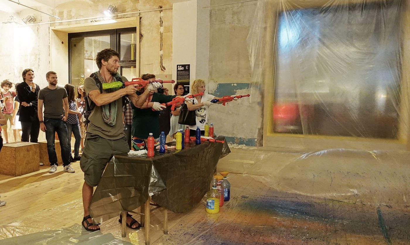 Uključivanje posetilaca u sam kreativni proces interaktivnim pristupom, za cilj ima da svojom percepcijom i akcijom uobliči konačno delo. Interaktivna uloga ovakve publike, koja je u funkciji učesnika-stvaraoca, jeste da odredi granice između realnog života i umetničke ideje. Finalni rezultat projekta je nastanak kolektivne slike na platnu na kome se projektuje video-rad o anketiranim građanima. Koršćenjem nekonvencionalnog slikarskog alata, tj. pištolja na vodu koji su napunjeni rastvorom slikarskog pigmenta, ušesnici simboličnim napadom pokušavaju da pogode i unište Hermesa koji se mestimično pojavljuje tokom projekcije. Postupkom prskanja (modifikovani postupak dripping-a, čije se poreklo nalazi u akcionom slikarstvu) na platnu ostaju spontani tragovi boje, pri čemu nastaje specifična vrsta kolektivne slike. Ona ostaje materijalni dokaz privremene umetničke intervencije, ostatak efemernog procesa, a projekcija na platnu se vidi kao nedostajuća. Projekat Hit the Hermes je otvoreni sistem koji se može dalje nadograđivati i realizovati na različitim lokacijama, pri čemu bi svaki put nastala autentična kolektivna slika.