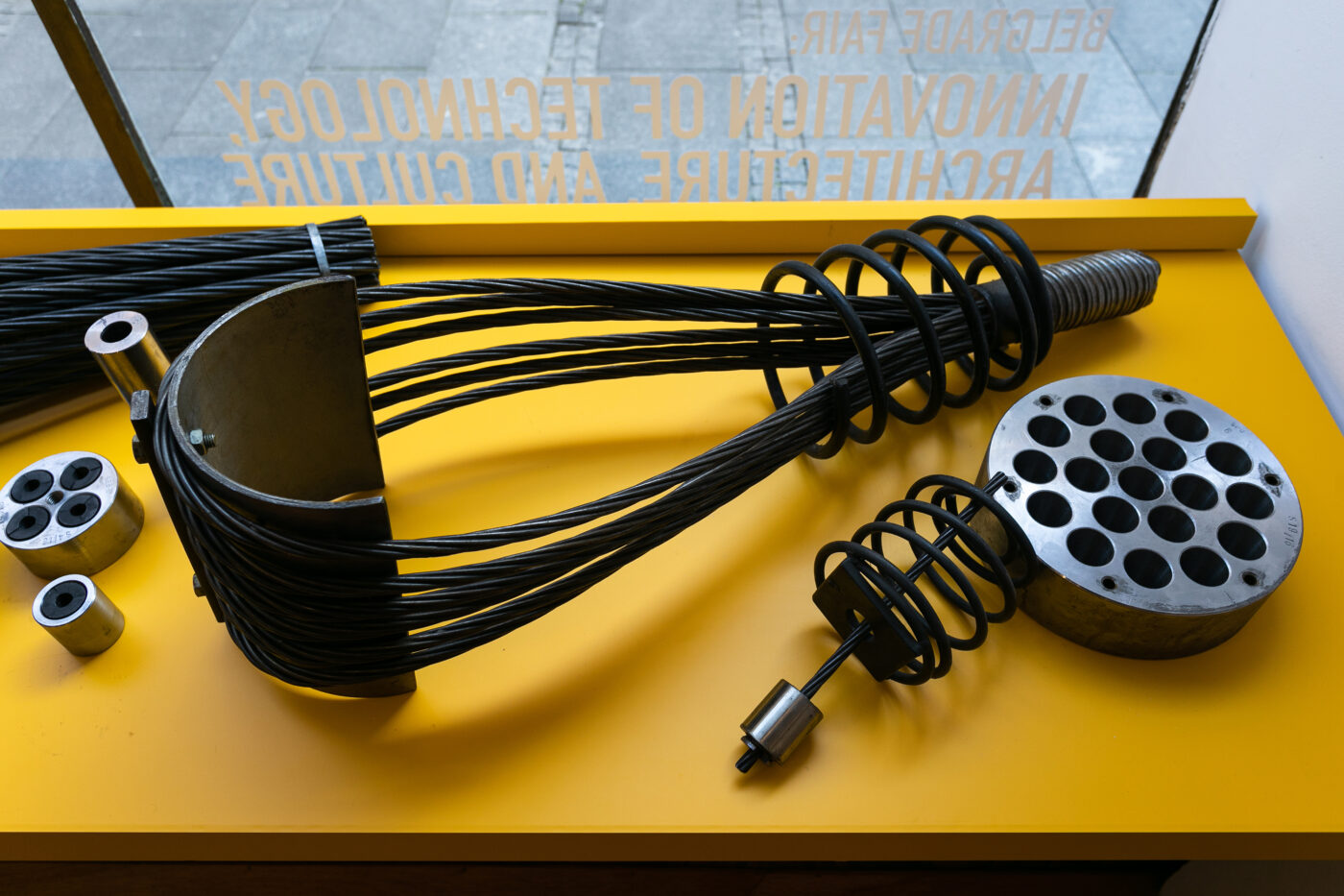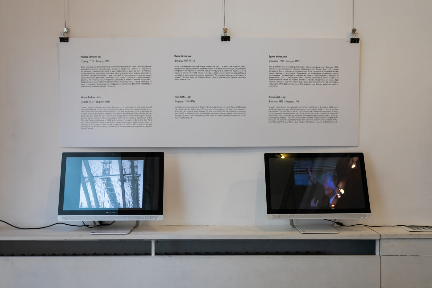 The Collective of Architects is grateful to the Belgrade Fair for the provided archival material and to the Institute for testing of materials – IMS for providing the exhibits of the IMS prestressing system to be exhibited.